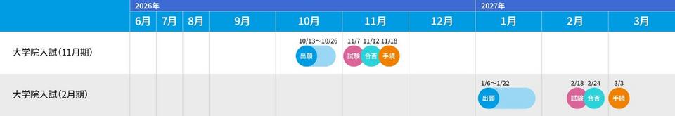 ※修士課程・博士課程(前期)については、本学該当学科の出身者を対象とする内部進学選考を7月に実施しています。出願資格確認が必要となりますので、詳細は各学科研究室へお問い合わせください。