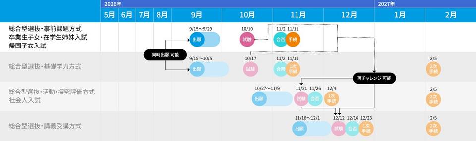 ※「総合型選抜 事前課題方式」と「総合型選抜 基礎学力方式」を同時出願することで、検定料が10,000円割引となります。