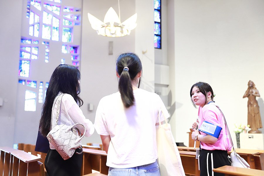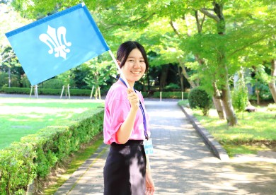 学生スタッフが緑豊かなキャンパスをご案内。在学生ならではのエピソードを聞きながら主要施設を見学いただけます。