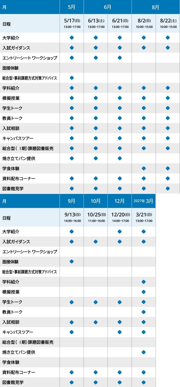 実施予定のイベントについては、scheduleの各日程から詳細をご確認ください。イベントの最新情報は、入試広報課公式SNSでも発信しています。ぜひフォローしてください。