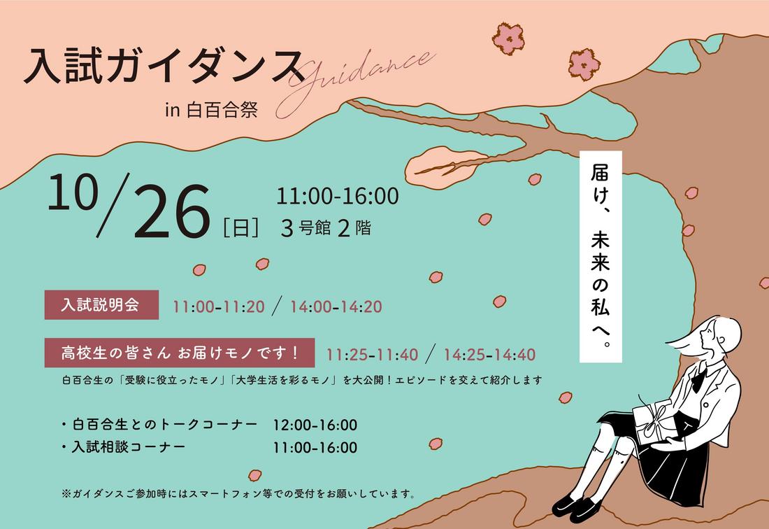 10月26日は白百合祭と同時開催!ガイダンスの後は、白百合祭をお楽しみください。