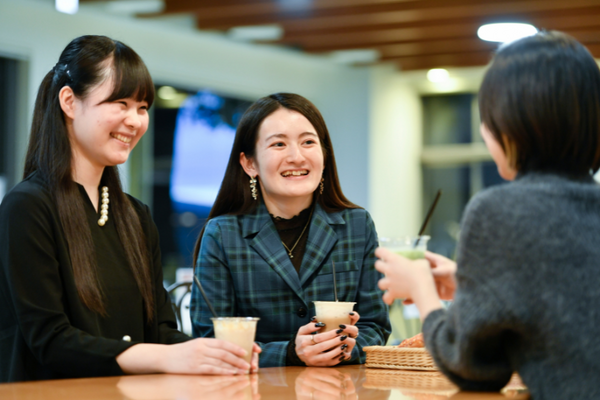 学生にも人気の焼き立てパンを食べながら、気になる学科の先輩と楽しくトーク