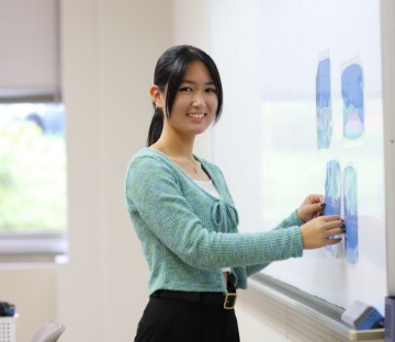 少人数教育に期待していましたが、教員との距離の近さは想像以上。質問や相談がとてもしやすい環境です。「女子大=静かでおとなしい」イメージでしたが、活発な学生が多く、授業でも自分の意見をしっかり表現する場面が多いことに驚きました。
