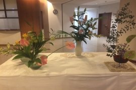毎週金曜日、部室で各自好きな時間にお稽古をしています。部員9 名がお花の生け方や知識を、華道の根源である「池坊」の先生から丁寧に教えていただいています。季節ごとのお花を楽しみながら学生生活を送れます。