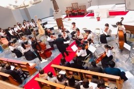 ヴァイオリン、ヴィオラ、チェロ、コントラバスの4つの弦楽器を使って演奏を行います。日々の練習の中で、さまざまな曲を練習し、コンサートに向けて楽しみながら活動をしています。