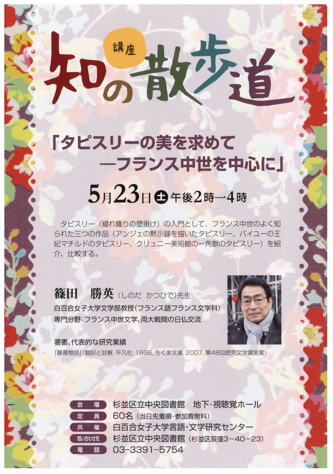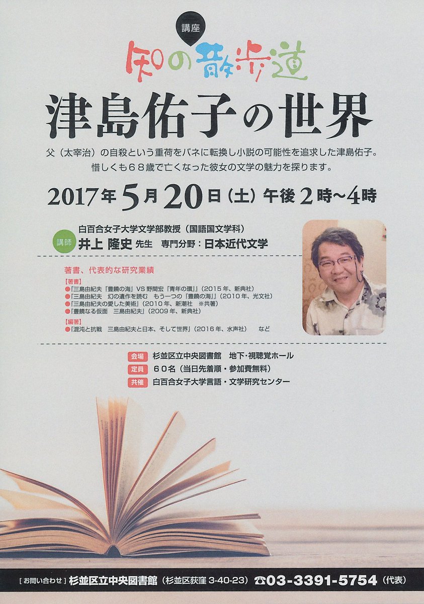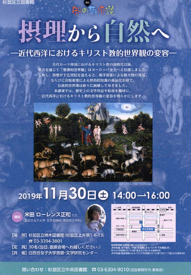 杉並区立中央図書館との共催文化講座。文学部の専任教員が講師として、杉並区立中央図書館での公開講演を行います。