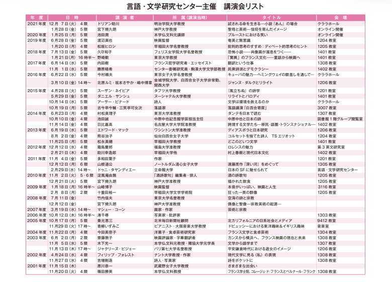 言語・文学研究センターでは年2回、外部から講師をお招きし、さまざまなテーマでの講演会を開催しています。