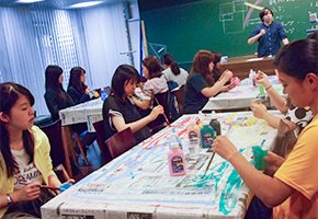 授業で行う造形体験を通し、自身も描くことやつくることを楽しみ、その過程で大人と子どもの表現の違いを知り、素材や用具について理解と配慮を考察していきます。美術演習室は、思いおもいの造形体験をたっぷりと味わうことができる空間となっています。