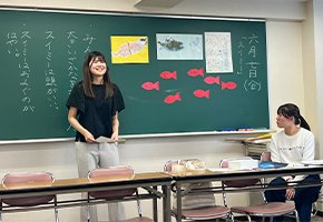 科目「国語」の教科の構造や内容と指導目標の理解を深め、授業を実践する力を養います。児童が主体的に「国語」の授業に参加し、言語能力を培うために教材研究と発問構成や取り入れる言語活動を学び、模擬授業を通して、実践的指導力を養います。