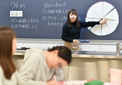 科目「算数」の内容を小学校学習指導要領等から理解し、算数における数学的活動の重要性などについて理解を深めます。実際に模擬授業を行って実践的指導者としての立場を経験するとともに、学習者の視点に立ったものの見方や考え方を広く認識できるように進めます。