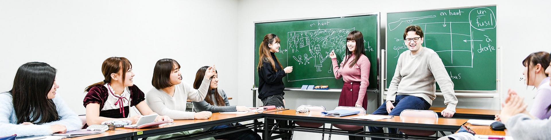 文学部では、日本、フランス語圏、英語圏を中心に、対象となる国について、また、その国の言語や文学、文化を広く学びながら、国際感覚と広い視野を養います。