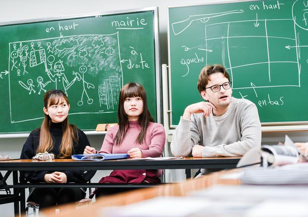 文学部は、日本、フランス語圏、英語圏など、研究対象となる国・言語によって3つの学科にわかれています。