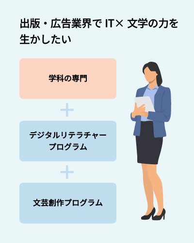 AIを含め近年急速に発展するデジタル技術がどのようなものか、それが文学とどう関わるのかを学ぶプログラムです。ITスキルの基礎やAIの実践的な活用例などを習得するとともに、その背景にある哲学的問題を学び、私たちの文学的想像力、創造力を飛躍的に広げることをめざします。