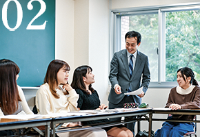 Students deepen their learning through two lines of study: culture and education. In the culture curriculum, students study the literature and history of the English-speaking world, particularly the U.K. and the U.S., and learn about the globalized world, including Japan. In the education curriculum, students not only study the English language from various angles, but also learn with an eye toward teacher training.