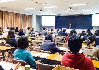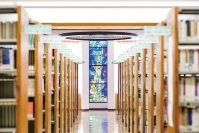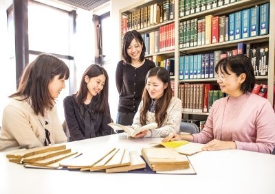 約31万冊の図書と4,500タイトルの雑誌を所蔵しています。電子ブック、電子ジャーナルと国内外の約30種類のデータベースを契約しており、在学生はこれらの電子資料を学外(自宅)からも利用出来ます。全フロアでWiFi接続が可能なので、各階の個人机で学習や研究に集中できる環境が整っています。また、文献や資料検索に関する相談は、いつでもレファレンスカウンターで受け付けています。