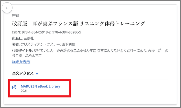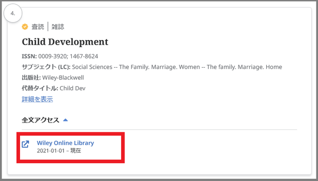 2. 該当タイトルの「全文アクセス」に表示されているプラットフォームを選択