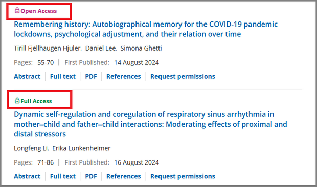 「Open Access」「Full Access」などの表記がある論文は、全文を読むことができます。