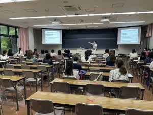 まず、学科紹介では、本学科の特色である、学生一人ひとりを大切にしたサポート体制や、人の一生(生涯発達)について学べること、そしてそうしたサポートや学びによって、入学前に描く自分の姿を実現していけることをお話ししました。