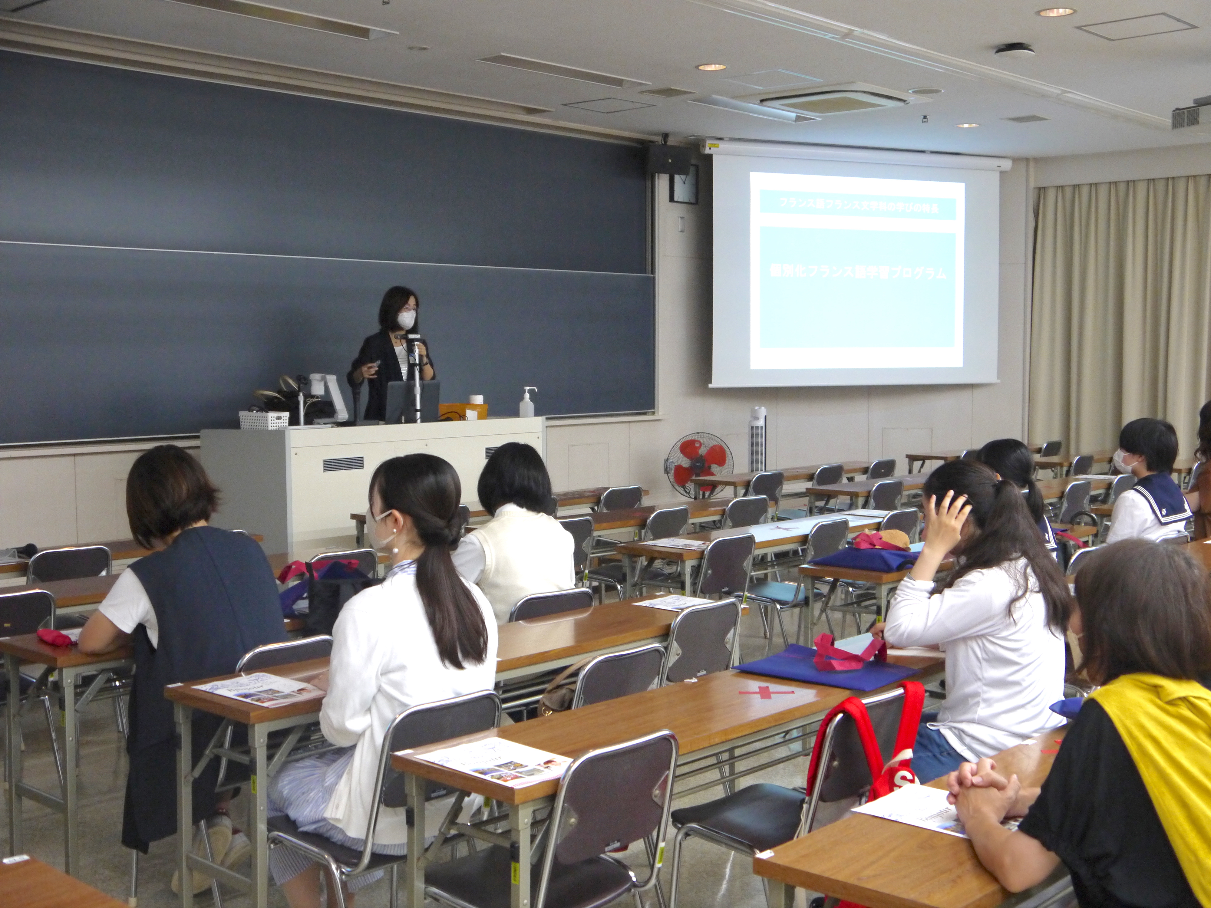 参加者のみなさんには非常に熱心に聞いていただき、在学生のお話に自然に拍手が湧くこともありました。サマースクールやオープンキャンパスですでに見覚えのあるお顔にも再会できましたが、初めて来校していただき、熱心に在校生の話に耳を傾けてくださった方の様子も大変嬉しく拝見しました。白百合女子大学フランス語フランス文学科でフランス語とフランス語圏の文化を学ぶ楽しさを少しでも感じていただけていれば幸いです。