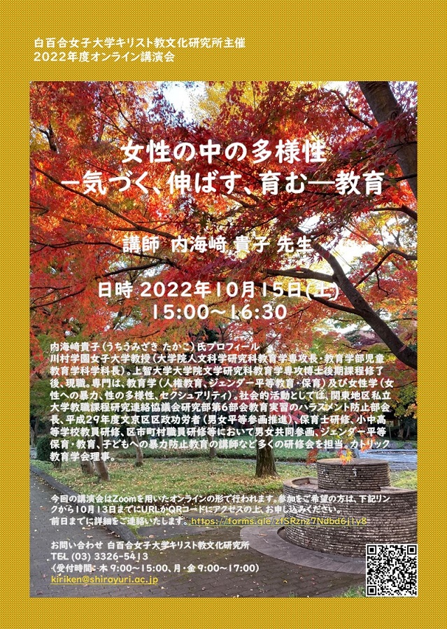 問い合わせ先:白百合女子大学キリスト教文化研究所 Tel 03-3326-5413