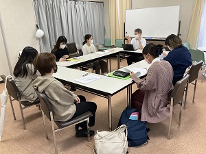 宮本信也先生のゼミでは、卒業論文のための準備段階として、自分が関心のあるテーマや分野を研究に繋げるための話し合いを先生と一対一で行います。ゼミは少人数制で行われ、他のゼミ生と先生のやりとりも聞くことができるので、他のゼミ生が興味のあることと、研究内容をどのように結び付けているかが、自分の研究内容や、何について調べたいかを考える上でも大変参考になります。先生は子どもの発達障害、心についてが専門で、それに関しての研究テーマはもちろん、それ以外にも自分の興味のあるテーマの研究にも熱心に向き合ってくれます。