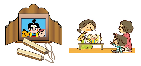 こうして紙芝居の楽しさをすっかり味わった後、今度は一家に一台ずつ準備された紙芝居舞 台を使って、家族で紙芝居を楽しむ時間になりました。