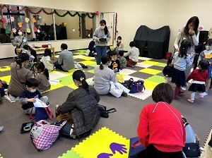 今回の企画では、子どもたちと一緒にペットボトルや空き缶など身近なものを使って楽器作りをしました。楽器はマラカス、ホーホー笛、タンバリンの3つを作りました。作業に苦戦している子どももいましたが、皆さんとても上手に作っていました。楽器が完成するとすぐに楽器を鳴らしてみる子もいて、嬉しそうに保護者の方や学生スタッフに楽器を見せてくれる姿が見受けられました。楽器を作り終えたら、クリスマスの曲に合わせて皆で楽器を自由に鳴らしました。ホーホー笛が好きな子どもが多いようで、綺麗な笛の音がたくさん聞こえてきました。