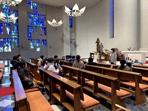 最後に、チャペルまで移動してクリスマスに関する紙芝居を2冊ほど読みました。子どもたちも真剣に紙芝居を聞いてくれました。