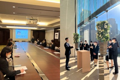 今回は、その独自のホスピタリティの考え方やブランド戦略、使命と責任などをパレスホテル東京ヒューマンリソース人事課のスタッフの方々から学ぶとともに、それらがどのような形で《世界から評価される品格あるクオリティ》にむすびついているのか、実際にホテル内を案内していただきました。