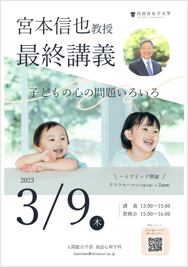 本学発達心理学科でご指導くださいました宮本信也先生が2023年3月末をもちまして定年退職なさいます。
