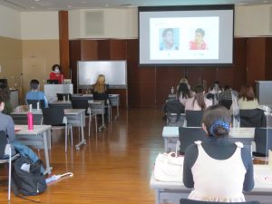 交換留学生の選んだテーマは、「アフリカに住むということ」、「私の好きなドラマ: I told sunset about you」、「モンスターハンター:ワールドについて」など、興味深いものでした。当日会場に集まった学生と教職員は、緊張を感じさせない堂々とした発表に耳を傾けていました。