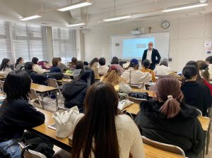 今回はANAグループの総合商社である全日空商事(株)事業部長の志賀氏より課題が出され、学生たちは昨年末からグループに分かれて取り組み、このたび商品企画の提案発表を行いました。