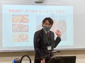 学生たちは学んできた知識やスキルを活かしながら、さまざまな角度から市場やターゲットを分析し、アプローチ方法にも工夫を凝らしました。そして、その最終的な提案メニューでは、ファミリー層を狙った健康志向でお得感のあるお惣菜や、今流行りとなっている韓国料理を中心に取り入れたメニュー、大豆ミートを使用した新規メニューなど、ユニークなアイデアが紹介されました。