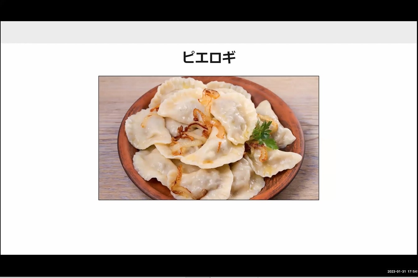 全員、日本語で自己紹介を行った後は、代表者による大学紹介がありました。コペルニクス大学の学生さんのスライドにはポーランド料理の写真もあり、餃子に似た料理があることに私たちも驚きました。