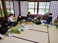 2022年6月7日(火)、留学生5名が、日本文化体験の一環として生け花に挑戦しました。普段、茶道や華道のクラブが活動している国の登録有形文化財であるめぐみ荘(旧菊池家住宅主屋)(※1)を使用して行いました。初めは少し緊張した表情の留学生たちでしたが、生け花の師範である日本語教育副専攻(※2)を修了した院生の優しい指導のもと、落ち着いた和やかな雰囲気の中で楽しく取り組みました。