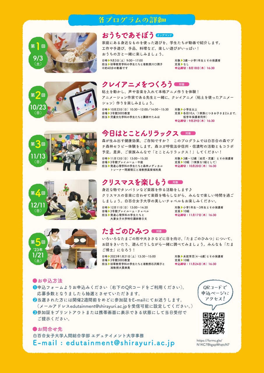 人間総合学部主催「 エデュテイメント大学」を今年も開催いたします。
