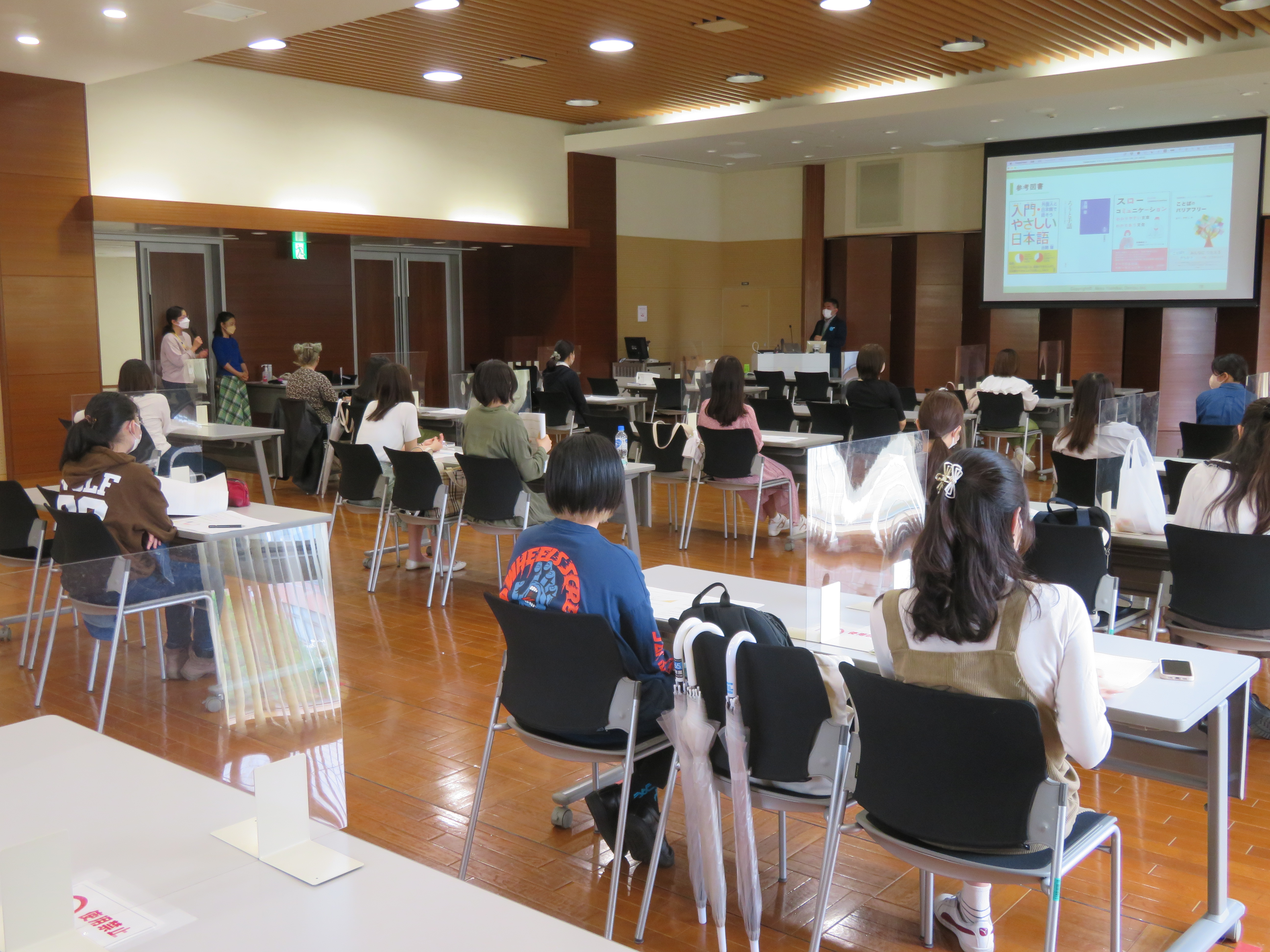 加えて、「やさしい日本語」は、外国人だけではなく、日本語の理解やコミュニケーションになんらかの困難を抱えている様々な人にも有効であるというお話や、「やさしい日本語」を使うと自動翻訳の結果もよくなるというお話もしていただき、参加した学生たちは真剣に耳を傾けていました。