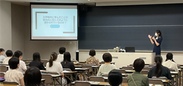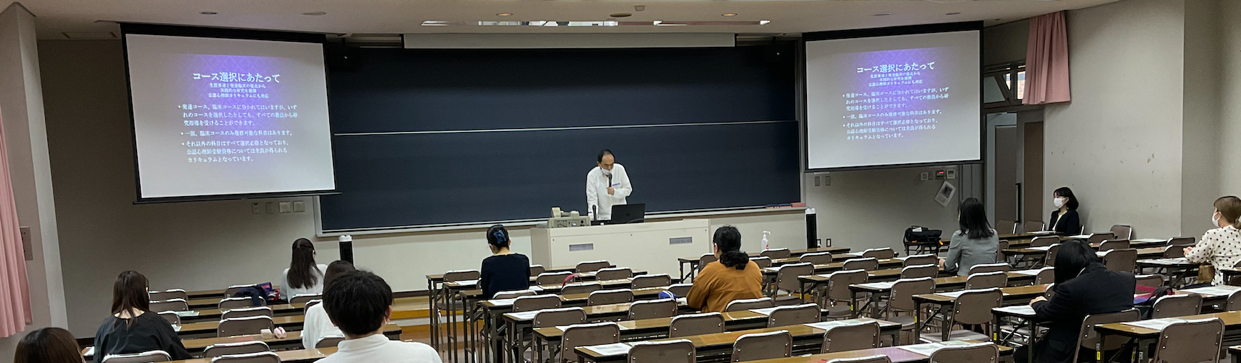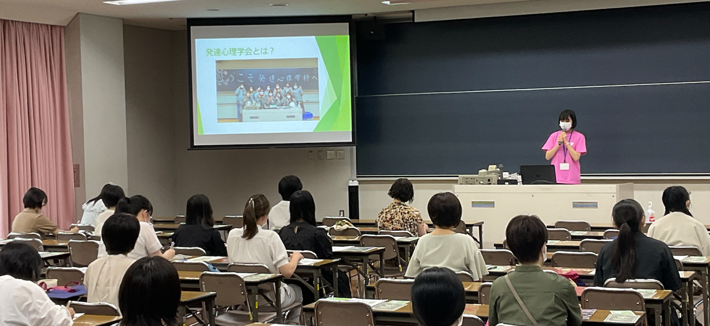 「大学院説明会」では、発達心理学コースと発達臨床心理学コースのカリキュラムや資格取得、そして修了後の進路について詳しい説明がありました。