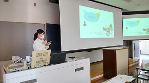 「文献講読」の回では、初学者のための心理学のテキストから3つの章(「精神の物質的基礎-脳と意識-」・「人の行動や心の進化-進化心理学入門-」・「社会における人間-社会心理学入門-」)を取り上げ、担当した箇所の内容について、学生がパワーポイントを使って発表をおこない、コメンテーター役の学生が質問や発展的に調べたことを報告します。