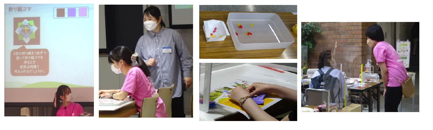 「模擬授業」では、どちらのコースも季節のカードづくりや折り紙コマなどを用いて、実際に体験しながら