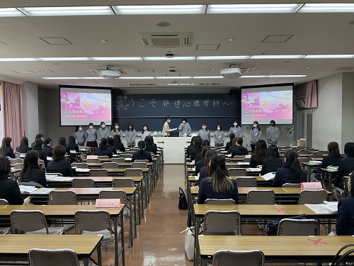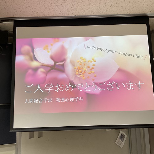 人間総合学部の入学式は午後から行われ、全体の入学式の後に、各学科に分かれて歓迎のセレモニーが行われました。新入生の皆さんは、これから4年間、是非充実した、そして、楽しい学生生活を送って欲しいと思います。