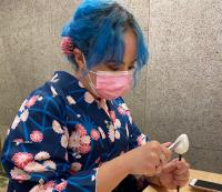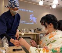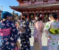 留学生と一緒に、浅草で着付けと飴細工を体験しました。