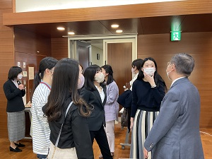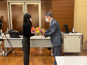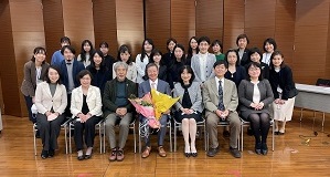 質疑応答では、事前に集めた質問の他、オンライン、会場の両方から質問応答が行われ、活発な議論がなされました。最終講義後には学生、卒業生、教職員が次々に宮本教授の周りに集まり、別れを惜しむ様子が見られ、花束や色紙、プレゼントの贈呈、集合写真と和やかで温かな雰囲気の中で宮本教授への感謝の気持ちを伝えることが出来る機会となりました。