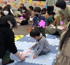 エンディングにはせんがわ劇場DELメンバーによるサクラが題材の絵本・紙芝居「はるだよ ニャオーン」の読み聞かせがあり、花びらが舞う穏やかな雰囲気の中、それぞれが五感をフル活用して春を体感している様子がみられました。