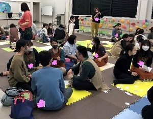 3月9日に、白百合女子大学人間総合学部国際交流プログラム「えいごであそぼう~からだで表現・えいごでピクニック♪春みっけ~」を開催しました。 「みんなでピクニックへお出かけ♪」をテーマに、英語や身体を使った様々なアクティビティーを通して、聴覚・視覚・身体感覚・触覚などへ働きかけをし、普段親しみの少ない言語に五感を用いて接し、親しみを持ってもらうことを目的として実施しました。また、絵本を発展させていく用い方を紹介し、ご家庭でも活用していただけるように工夫を凝らして展開しました。