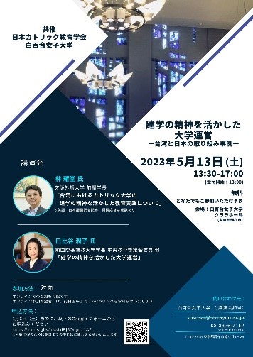 また、5月13日(土)には、林教授と、前国際基督教大学学長の日比谷潤子氏を講演者とする、日本カトリック教育学会との共催による講演会「建学の精神を活かした大学運営 — 台湾と日本の取り組み事例 —」を開催いたします。