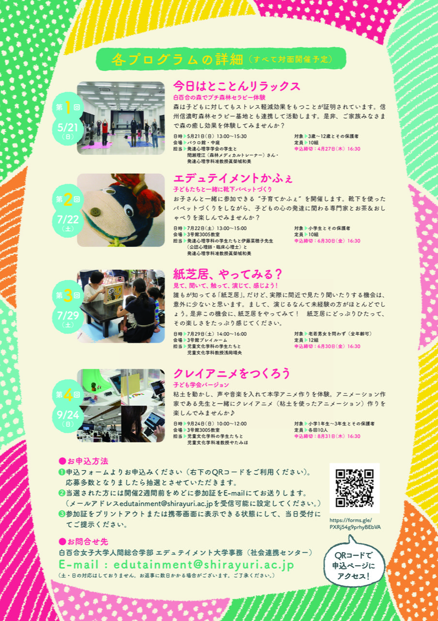 人間総合学部主催「 エデュテイメント大学」を今年も開催いたします。
