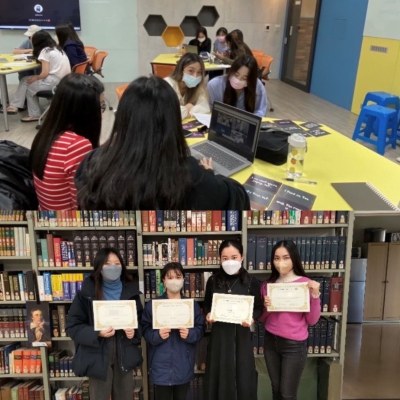 この勉強会は、静宜大学1年生のプレゼンテーション授業に、本学の3年生がリーダーとして各グループに加わる形で行い、英語力、プレゼンテーション能力のブラッシュアップだけでなく、考え方、発表の仕方、評価の方法の違いなども学ぶことができました。参加した学生に修了証が渡されました。