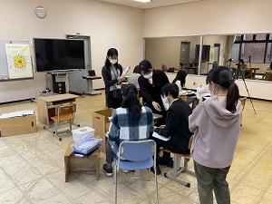 そのため、グループでの指導とはいっても、各担当チームの学生たちはそれぞれのお子さん毎に異なる課題プリントや教材を準備します。指導前には、用意した課題に対して、お子さんの反応を上手く引き出せた時、あるいは引き出せなかった時の言葉かけや支援方法について、具体的にシミュレーションしていきます。