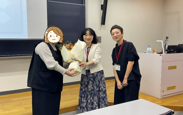 はじめに学科長の菅原ますみ教授から、開会のご挨拶とともに発達心理学科の略歴と現在の状況をご報告させていただきました。本学科は発達を軸にした心理学という特色に加え、公認心理師カリキュラムをも備えた日本では希少な学科です。卒論のテーマは多岐にわたり、就職状況も好調で、学部生の25%がさらなる専門性を目指して大学院へ進学します。とても誇らしく感じています!昨年度からは卒業生子女・在学生姉妹入試制度も導入し、実際に入学生をお迎えしています。私たち同窓の輪がどんどん広がっていくといいですね。